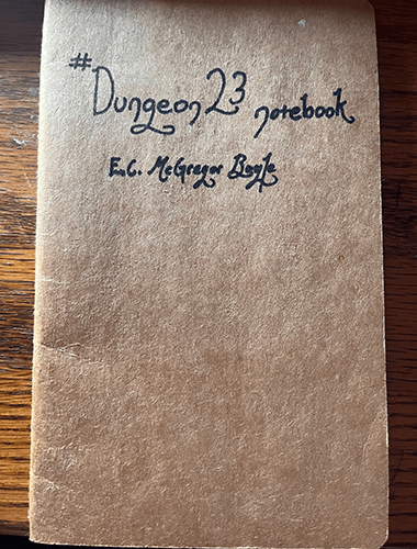 So, I’m going to tackle this Dungeon23 idea. (This is Mac speaking, incidentally — I talked over the project with Zoe, but the analog element makes it a bit hard to collaborate from a distance, and she has other projects to focus on, so this one’s just me.) The idea, if you didn’t feel like clicking on that link, is to create a TTRPG “megadungeon” by doing one dungeon room per day, one level of the dungeon each month, so that you have a 12-level, 365-room dungeon at the end of the year.